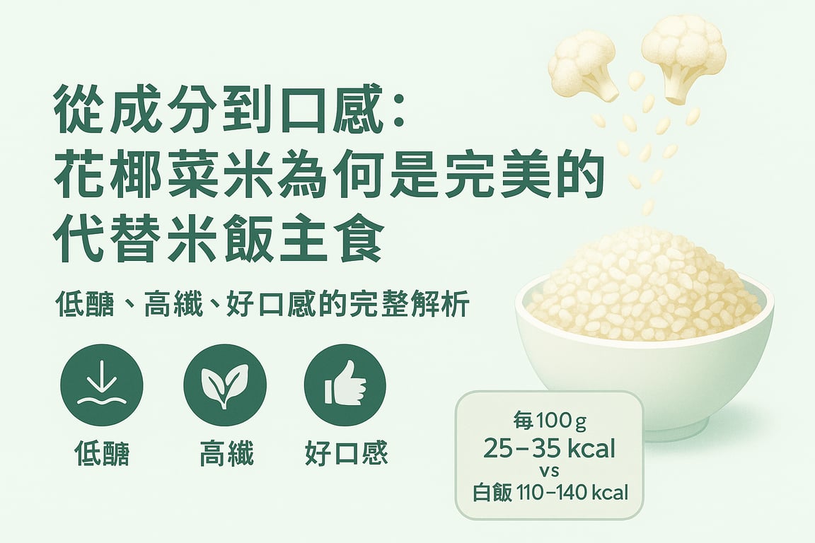 近年「花椰菜米(cauliflower rice)」成了低醣飲食與控卡族的心頭好。它外表像米、用途像米,卻有著完全不同的營養輪廓。這篇文章從成分、血糖影響、飽足感到烹調口感,全面解析花椰菜米為什麼能成為日常餐桌上可長可久的主食替代品。